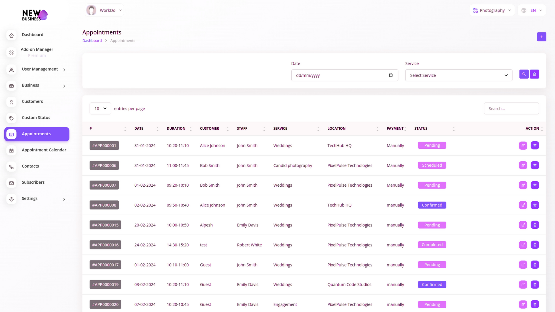 Easily assign bookings, track staff availability, and manage multiple service providers under one system. Each team member gets a clear view of their appointments, while you stay in full control of the big picture — improving coordination and saving valuable admin time.